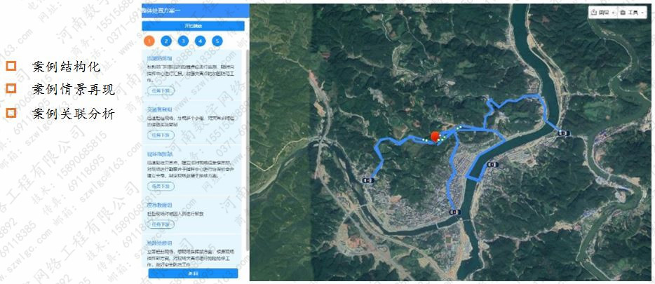將案例進行結(jié)構(gòu)化處理,包括突發(fā)事件處置階段、處置方式、處置效果、經(jīng)驗教訓等內(nèi)容,并將這些關(guān)鍵要素進行抽取整理,形成結(jié)構(gòu)化案例信息。利用電子沙盤,以復盤演練的方式,實現(xiàn)案例情景再現(xiàn);提供案例庫,在應(yīng)急處置過程中自動關(guān)聯(lián)匹配歷史相似案例,實現(xiàn)對案例總結(jié)評估和突發(fā)事件救援指揮的決策支撐 |